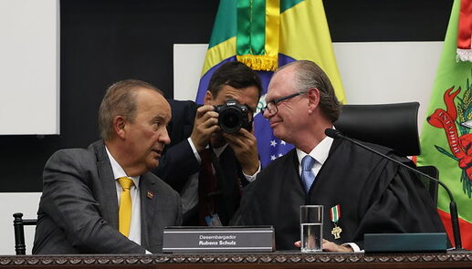 Ao se dirigir ao novo presidente do Tribunal, Rubens Schulz, e às autoridades presentes, o governador afirmou que, desde o primeiro dia de seu mandato, mantém diálogo permanente com todos os Poderes, com destaque especial para o Judiciário.